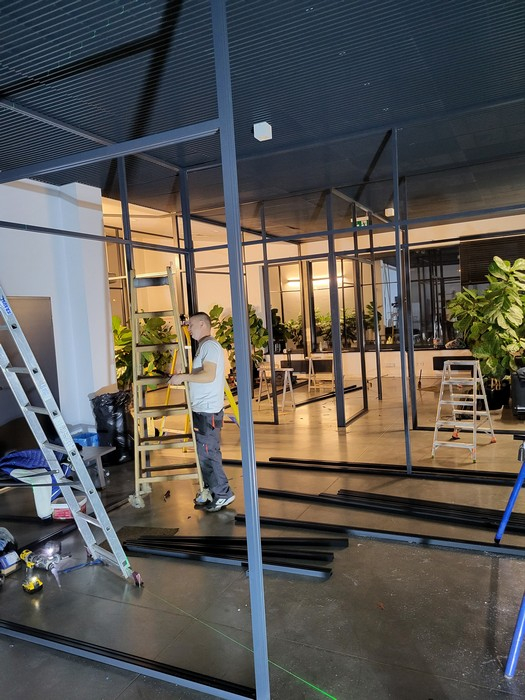 Cało szklane lub w profilach aluminiowych. Pozwalają dowolnie dzielić i kształtować przestrzeń zarówno biurową jak i w pomieszczeniach domowych różnym wypełnieniem: