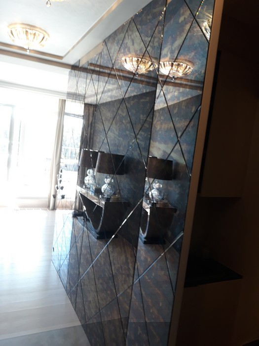 Stosuje się do salonu, przedpokoju, łazienki, szafy itp. Lustra tzw.bezpieczne (podklejone folią z tyłu) wykorzystywane do sal tanecznych, fitness klubów, szkół, przedszkoli, biur, salonów fryzjerskich itp. Występują lustra : srebrne lub opty white (tzw.kryształowe) do przeglądania się i brązowe, grafitowe do dekoracji. Lustra powiększają optycznie małe pomieszczenia takie jak łazienki , przedpokoje itp.