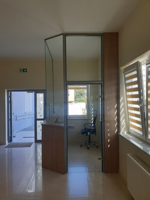 – szkłem przeźroczystym lub częściowo oklejonym folią matową zapewniająca prywatność.